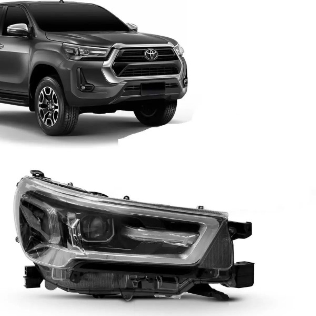 Descrição: HILUX 21/25 PICK-UP FAROL ELET CROM C/LED 8P LD